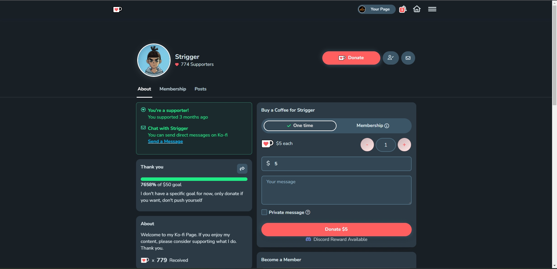 Vào lại link donate Ko-Fi : https://ko-fi.com/strigger