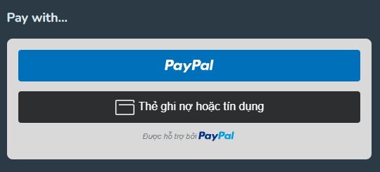 Sau khi nhập xong, click ô "Donate 5$" màu đỏ, bây giờ bạn có 2 lựa chọn - Paypal : nếu như bạn có tài khoản PP có usd - Thẻ ghi nợ hoặc tín dụng : nếu như có visa hoặc mastercard